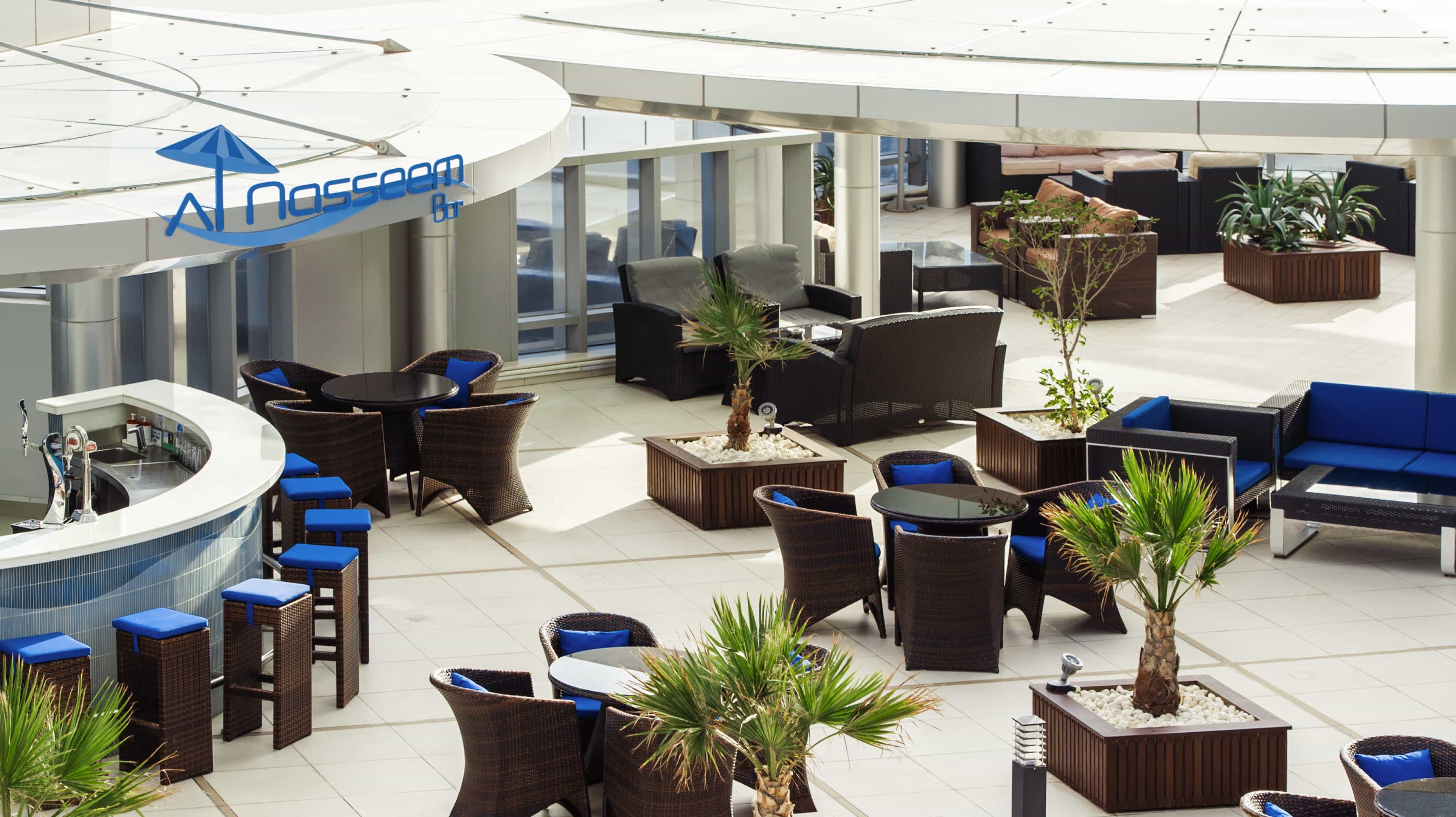 بإمكان المستلقين بجانب المسبح أن يستمتعوا بتناول الطعام في الهواء الطلق وبفصل الصيف المنعش وبالمشروبات اللذيذة التي يختارونها. كما بإمكانهم الإستفادة من عروض الإسترخاء المسائية المميزة والمتوفرة.
