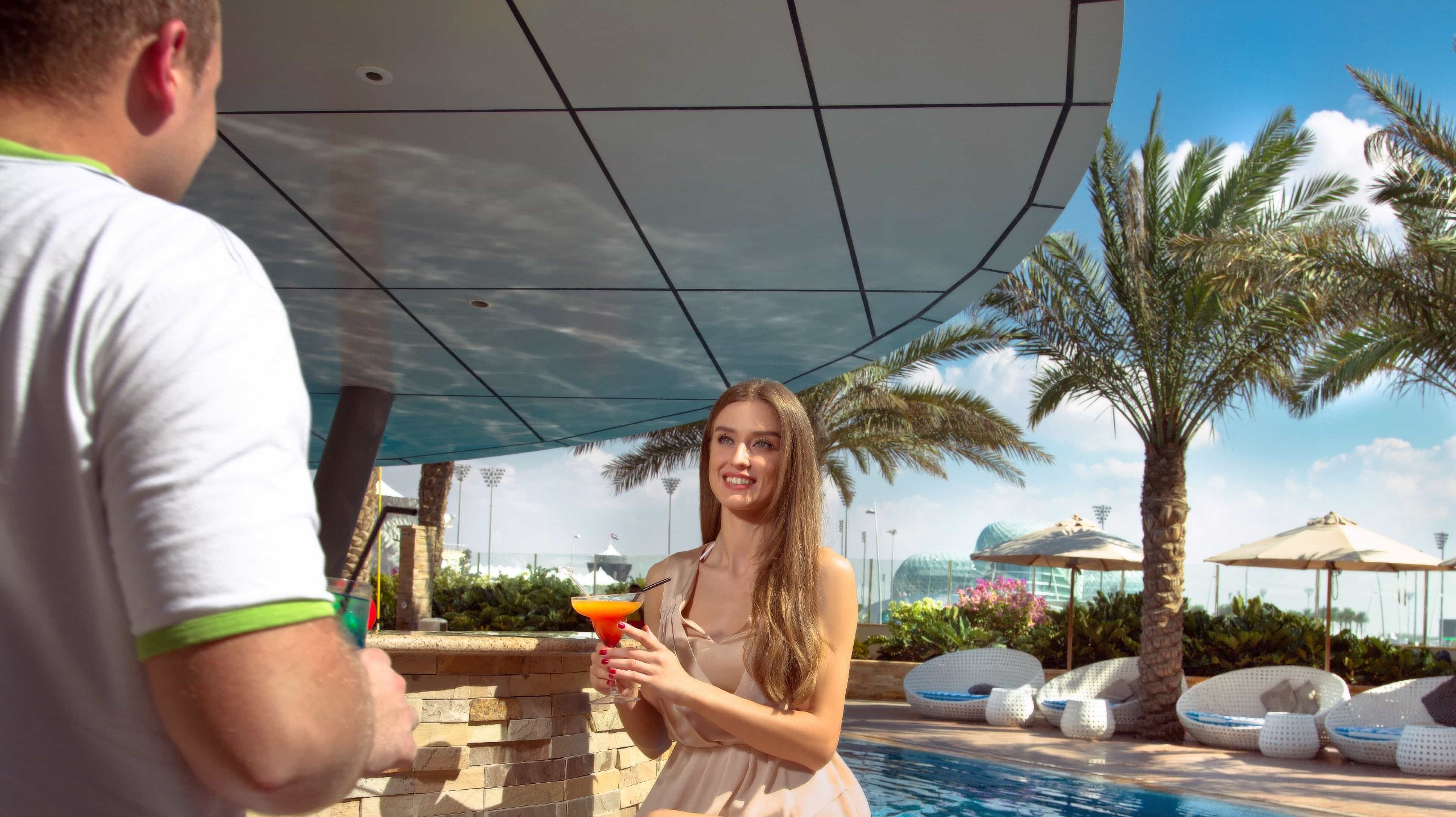 Satisfy your appetite at Aquarius Pool Bar after luxuriating in Pearl Rotana's roof-deck pool. The pool bar serves light meals and refreshing drinks that are perfect while relaxing under the sun.