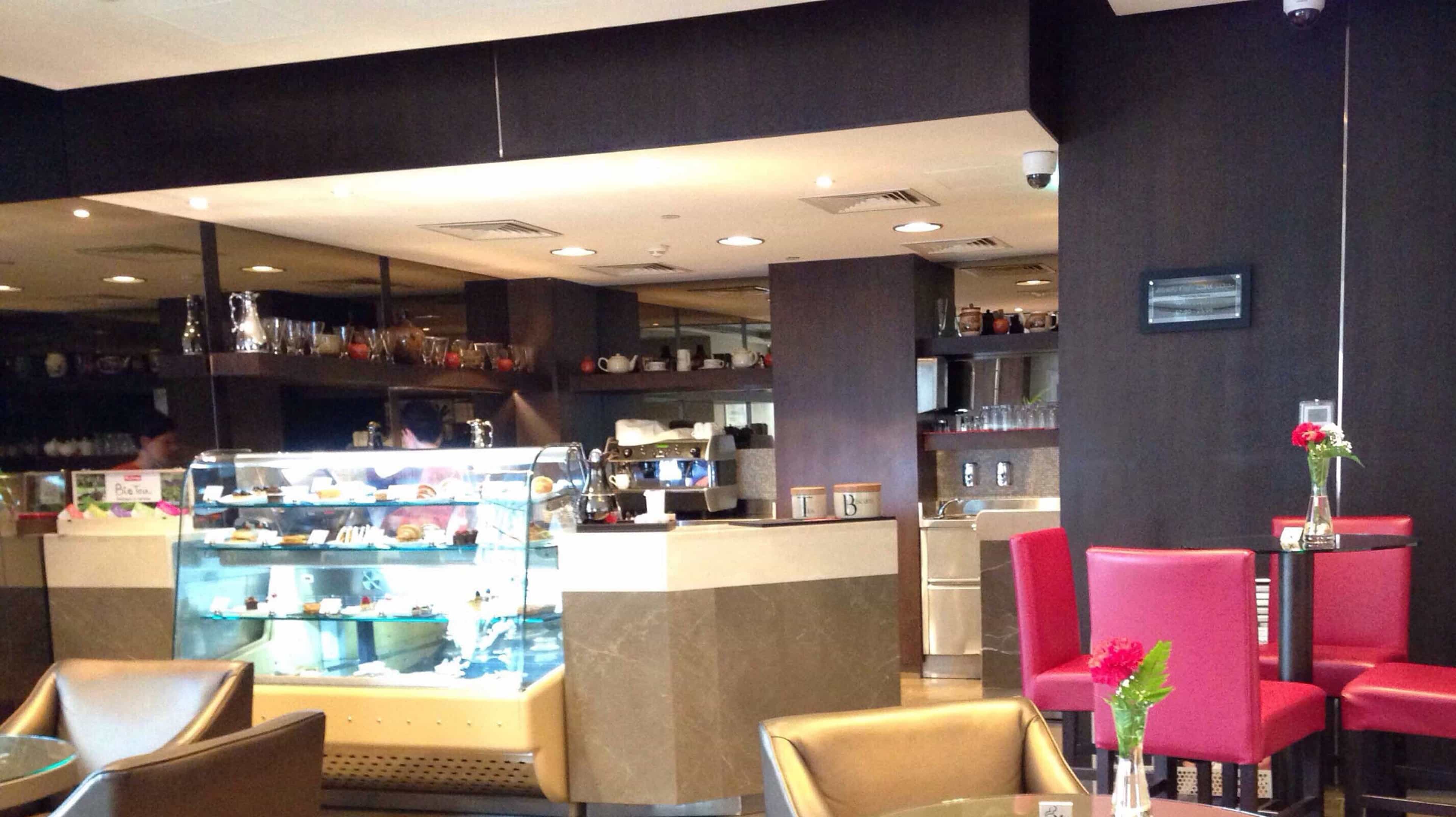 يقدّم المقهى تشكيلة واسعة من القهوة والشاي الطازجين، بالإضافة إلى الوجبات الخفيفة والمعجنات الدولية الفاخرة. إنّه المكان المثالي للالتقاء بالأصدقاء أو لتناول غداء عملٍ خفيف.
