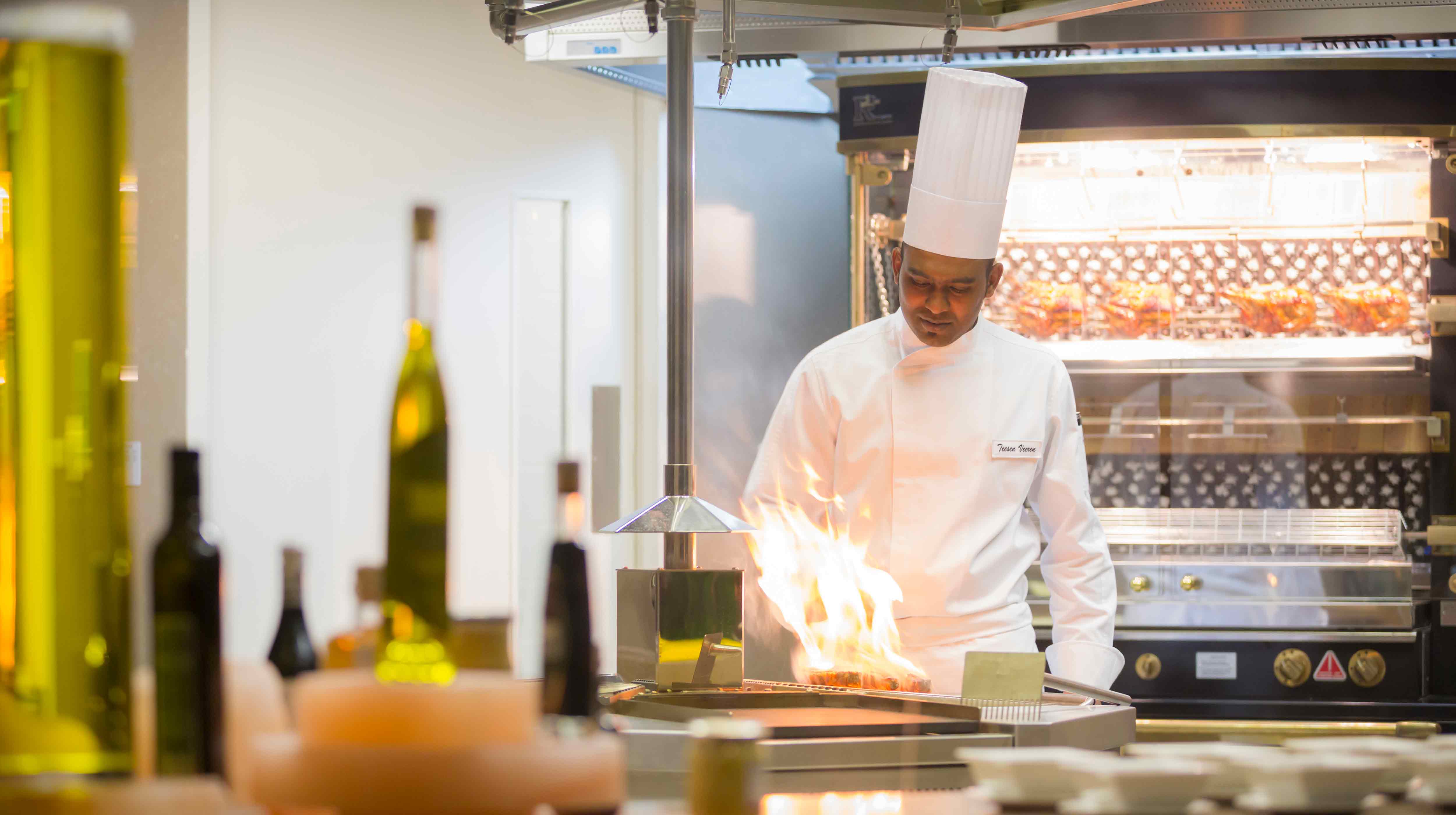 يُعدّ الطهاة الموهوبون في المطعم مأكولاتٍ آسيوية وأوروبية وشرق أوسطية من أشهى ما يكون. وقد بات بوفيه الحلويات ميزةً رئيسية في المطعم إذ يضمّ تشكيلةً من المعجنات العصرية والتقليدية. وبالتالي سوف يعشق الضيوف أنواع التارت والفطائر والكعكات الشهية.