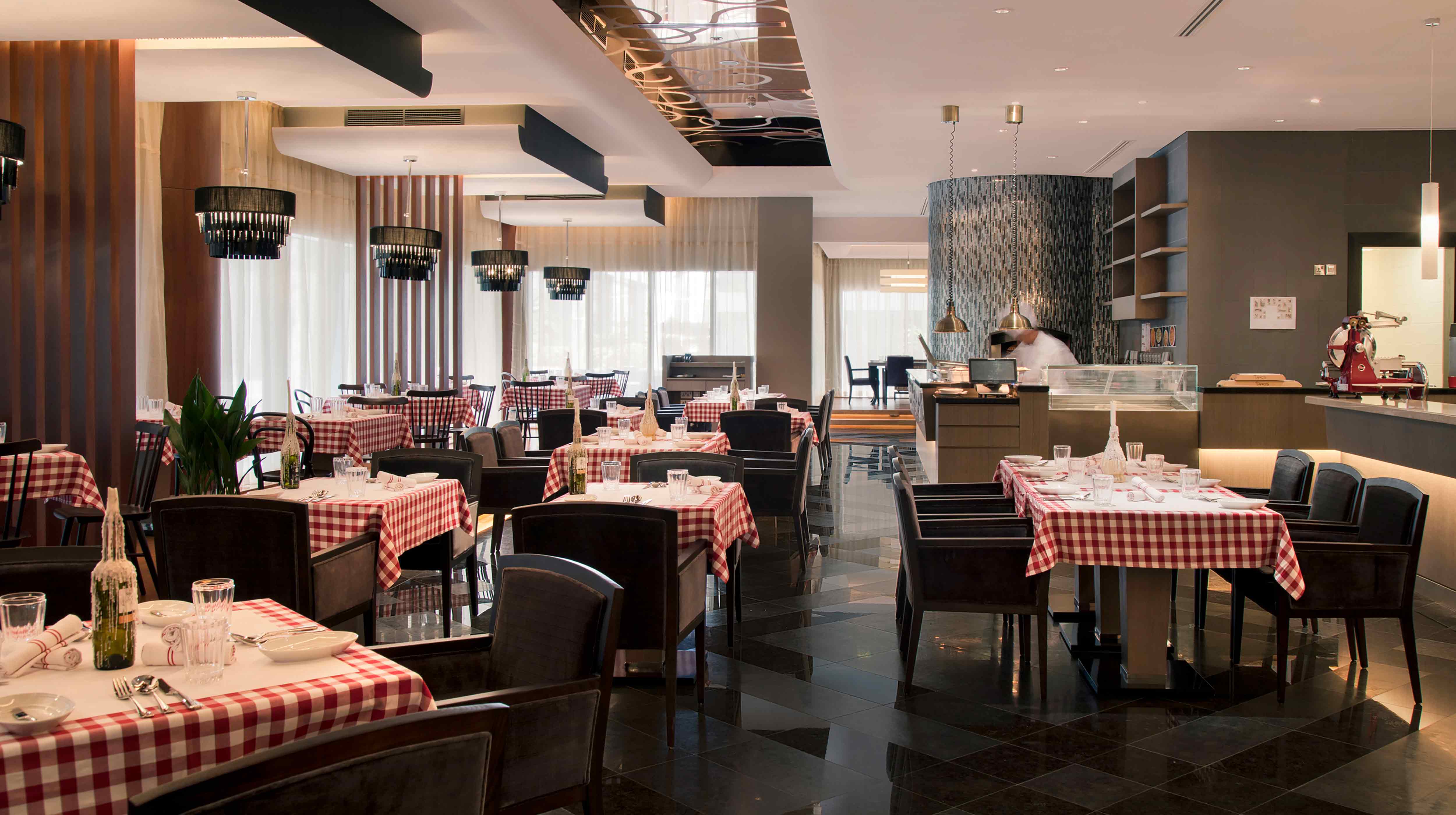 يقع مطعم دلما في فندق ومنتجع غولدن توليب الجزيرة وتحديداً في منتجعه الشاطئي ويتمتع بأجواء مريحة غير متكلفة.