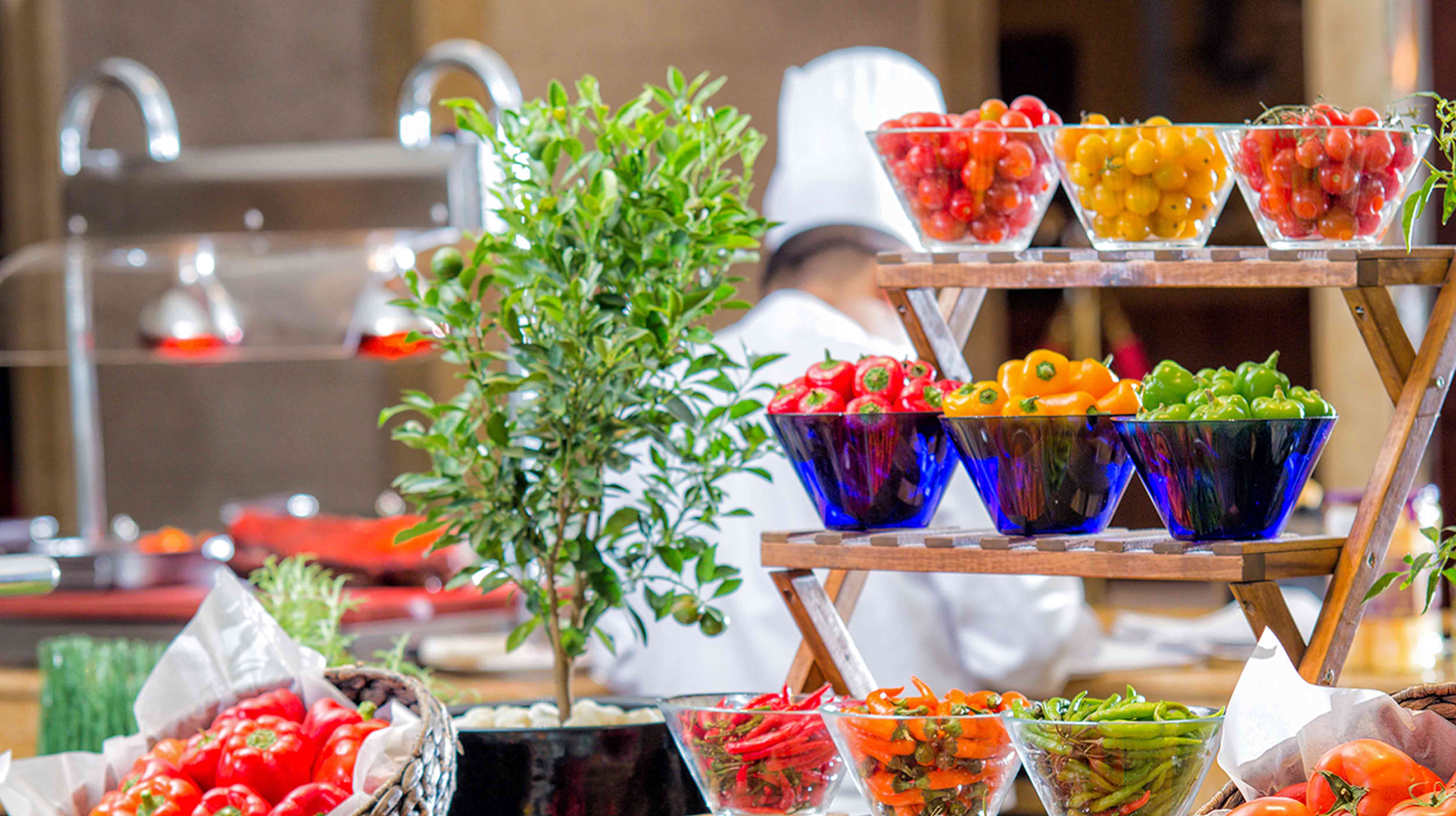 ماكولات عالمية مع النكهات الشرقية. الافق هو مطعم معاصر وانيق يقدم كما يفعل الفندق الرئيسي مكانا لتناول الاطعمة الصحية للصغار والكبار ويتميز بوجبات يوم الجمعة الخاصة التي يقدم فيها تشكيلة واسعة من الوجبات المحلية والاطباق العالمية مع خيارات الجلوس في الداخل او في الهواء الطلق.
