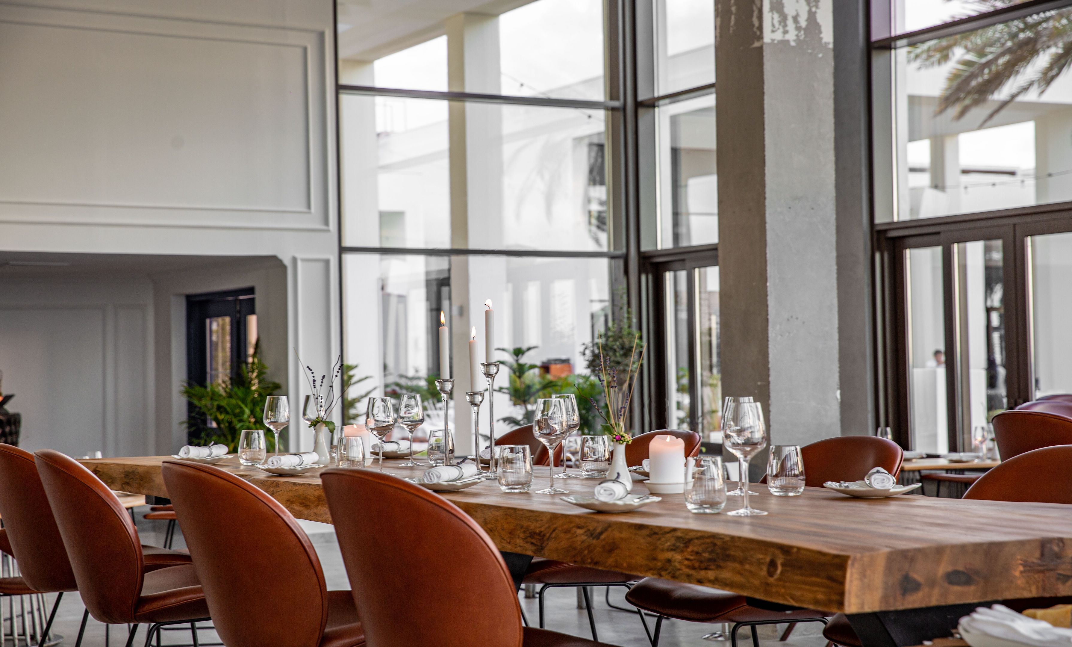 تسمح النوافذ الممتدة من الأرض إلى السقف بضوء الشمس الذهبي وتشطيبات بسيطة وفاخرة - مرايا جدارية عتيقة واسعة وبار رخامي وثريا عتيقة مبهرة وطاولة خشبية منحوتة يدويًا - تتحد لتخلق مساحة أنيقة تنضح بالسحر الفرنسي.