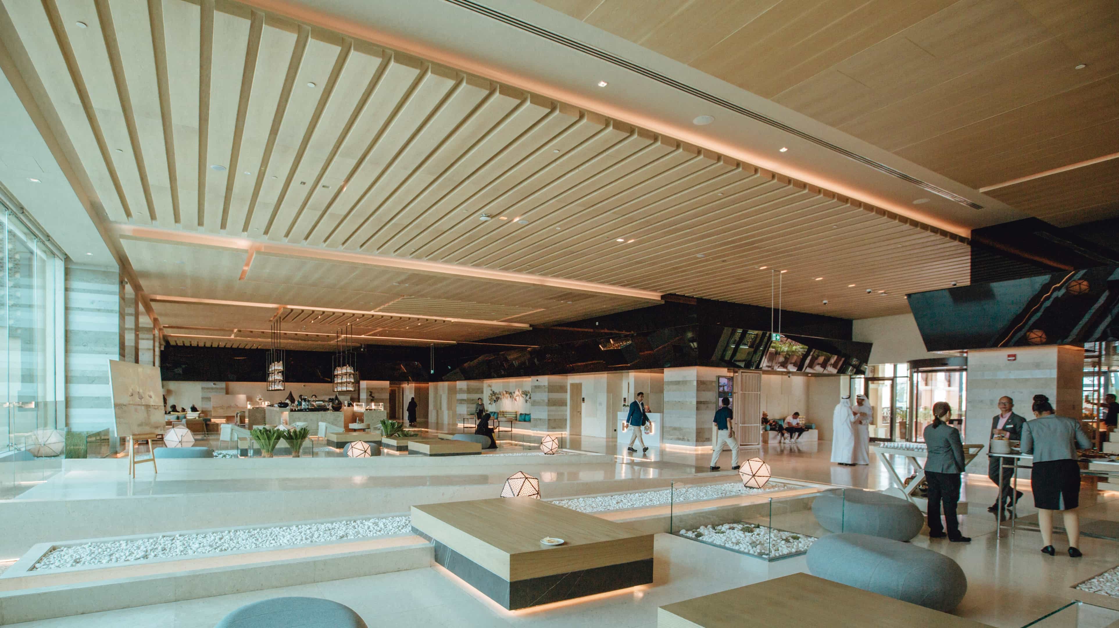 يتميز سما لوبي لاونج الواقع في منتجع السعديات روتانا بأجواءٍ مريحةٍ وأنيقة تمدّ النزلاء بالطاقة الإيجابية وتحثّهم على الاسترخاء. وتضفي تصميماته الداخلية المشرقة، مع اللمسات الخشبية الفاتحة، طابعاً هادئاً على المكان يتناسب تماماً مع أجواء المنتجع الراقية.
