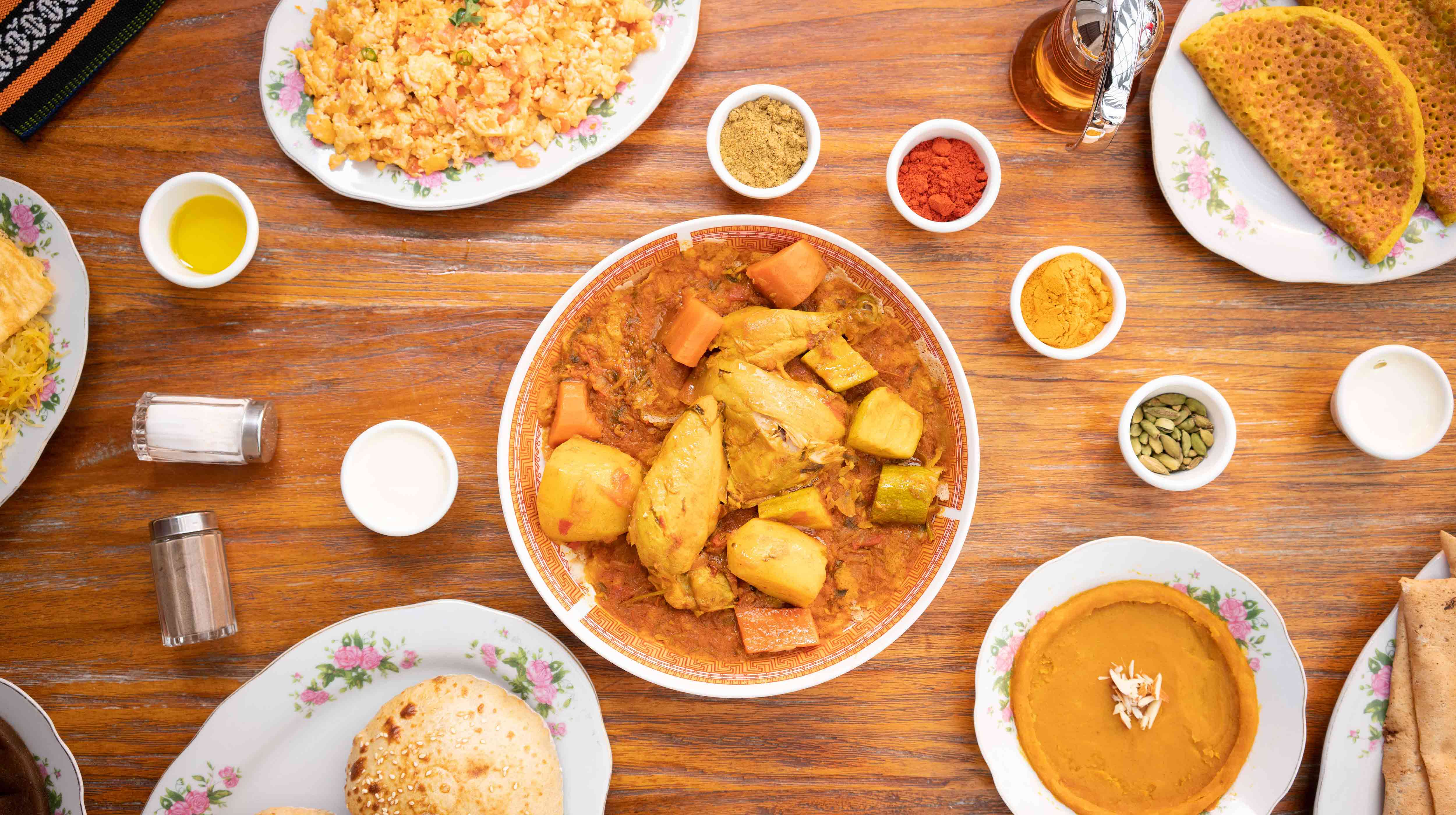 If you're looking to experience the finest traditional Arabic cuisine in a relaxed, inviting setting, make sure you visit Saudi Kitchen in Abu Dhabi. This cosy, down-to-earth space is perfect for families or large groups of friends. The menu offers classic Saudi fare, from Madfoon (a meat-and-rice dish where the marinated meat is cooked in an underground hole surrounded by charcoal) to Harees (chicken and beaten wheat), and a variety of flavourful fish and chicken dishes, along with fresh juices. If you're in the mood for wholesome take-out, Saudi Kitchen also provides a free home-delivery service.