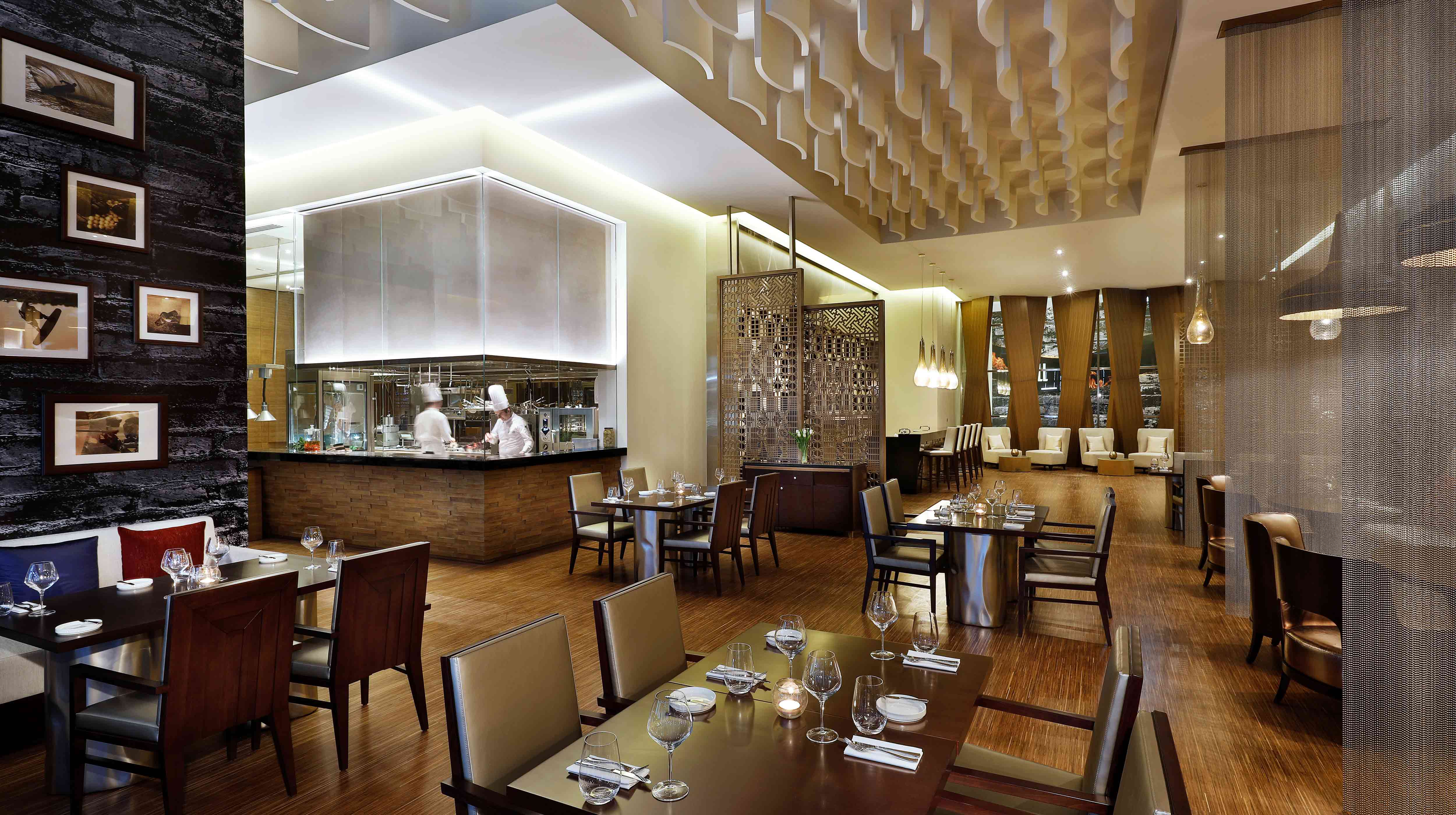 The Grille at the Abu Dhabi Golf Club has an inviting ambience, with floor-to-ceiling windows and stunning golf course views, and serving fine steaks and fresh seafood. Whether you're grabbing a well-deserved steak after a round of golf or simply visit to admire the views over good food, you'll leave The Grille super-satisfied. The beverages selection is generous, with many wines, spirits, craft beers and signature cocktails available. On the menu, USDA Certified Angus steaks are available, or try the Australian Angus or Wagyu-Tajima with your choice of sides and sauce. Other mains include risotto, Chicken “Under a Brick”, ribs, lamb loin or pan-fried glazed salmon.
