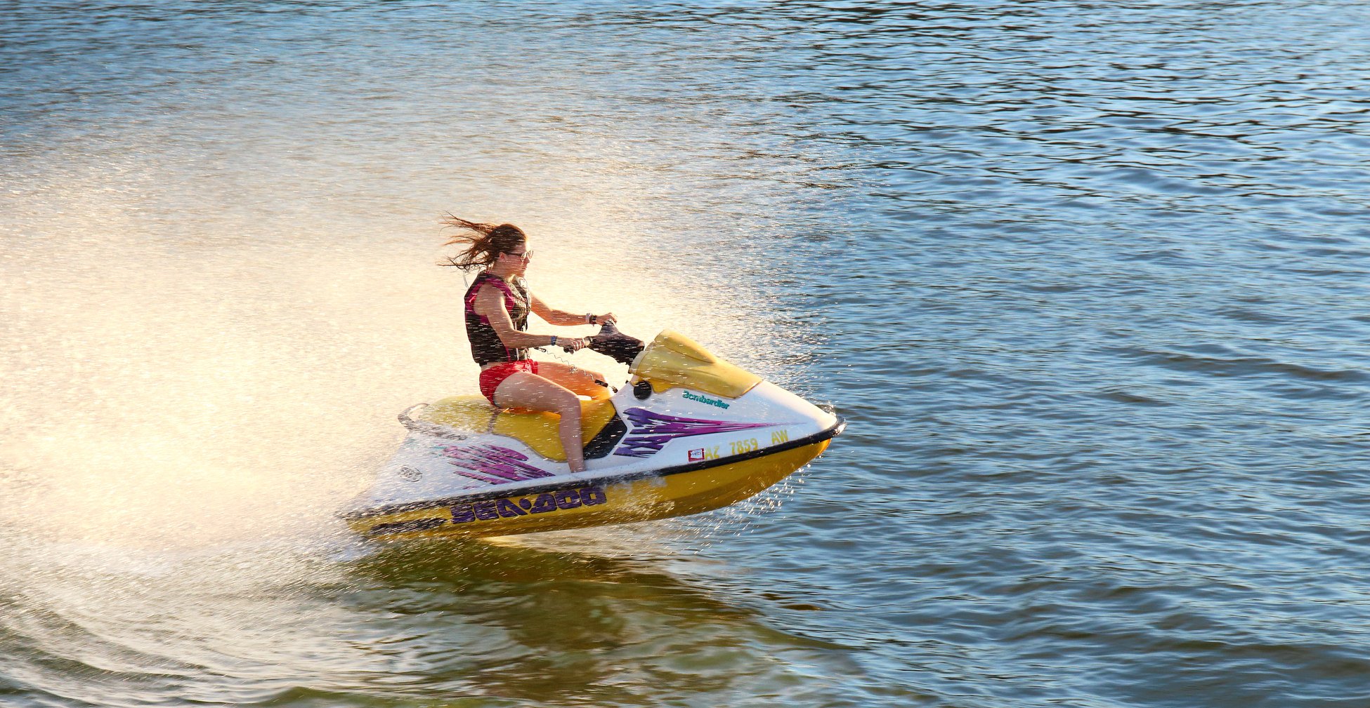 Jet skis and other personal watercraft are a thrilling way to skim the surface, but they come with a few rules: only those 18 and up can ride solo, while 14–17-year-olds should be accompanied by a licensed adult.
